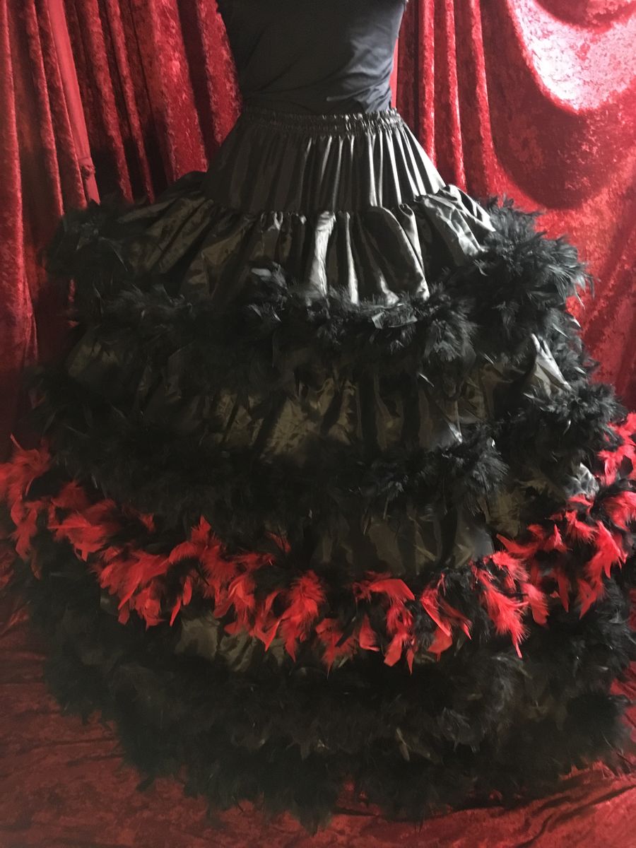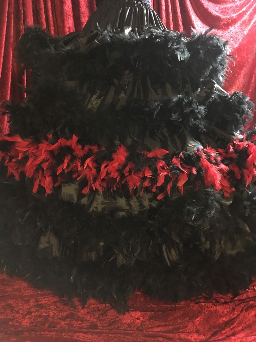 Custom Feathered, Tiered, Ruffled Crinoline Hoop Skirt